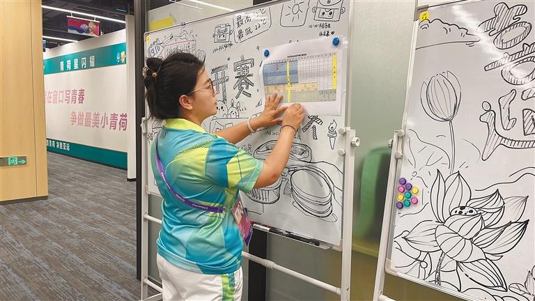 “小青荷”索朗德吉在張貼賽區(qū)賽程表。記者 萬(wàn)靖 攝