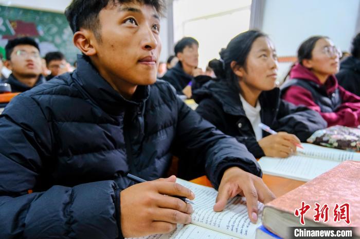 10月12日,中新社記者走進(jìn)西藏藏醫(yī)藥大學(xué)教室,一位老師正向40多位學(xué)生用藏語(yǔ)講授藏醫(yī)藥典籍《四部醫(yī)典》中的脈診,不少同學(xué)的筆記本上,用藏文密密麻麻記滿了要點(diǎn)。