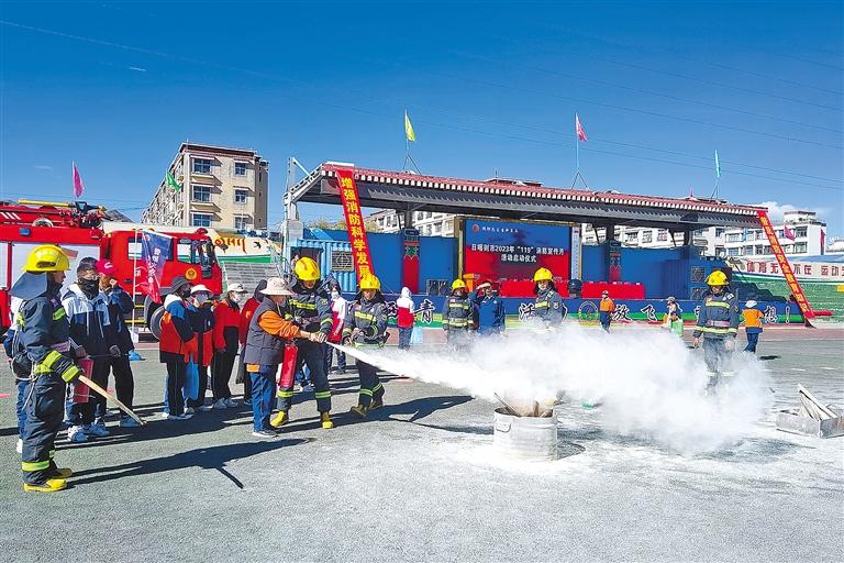 11月5日,2023年日喀則市“119”消防宣傳月活動(dòng)啟動(dòng)儀式在日喀則市第三高級(jí)中學(xué)舉行。日喀則市消防安全委員會(huì)成員單位及師生代表共1500余人參加活動(dòng)?;顒?dòng)中,消防技能挑戰(zhàn)、消防科普互動(dòng)、消防裝備展覽、改革轉(zhuǎn)隸五周年成果展、消防技能展示等,吸引了大批師生近距離體驗(yàn)消防、認(rèn)識(shí)消防,進(jìn)一步筑牢校園消防安全“防火墻”。