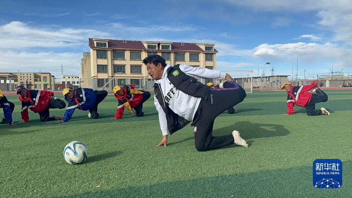 10月13日,在西藏那曲市班戈縣中石化小學(xué),學(xué)生在操場(chǎng)上做運(yùn)動(dòng)。新華社發(fā)(王敬 攝)