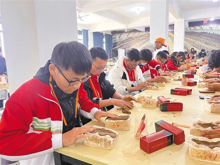 圖為學生在制作小兵馬俑。記者 鹿麗娟 攝