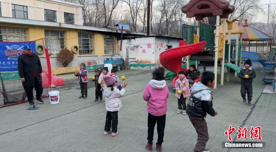 12月23日,家住青海西寧的臺灣青年棒球教練劉興鴻抵達青海省海東市民和縣中川鄉(xiāng)美一小學受災(zāi)安置點,支起簡易球網(wǎng),與小朋友們一起體驗棒球,并為他們分發(fā)愛心物資。劉興鴻說,這些物資是西寧師大附小的棒球少年們用零用錢購買的,希望將大家的愛心傳遞給災(zāi)區(qū)小朋友。圖為臺灣青年棒球教練劉興鴻(左)帶領(lǐng)青海民和災(zāi)區(qū)小朋友體驗棒球。