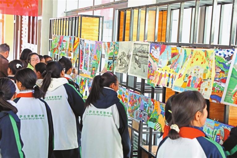 圖為拉薩北京實驗中學學生參觀書畫展。記者 格桑倫珠 攝