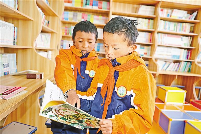 圖為吉隆縣折巴鄉(xiāng)完全小學(xué)的學(xué)生在閱讀課外書。 次仁央宗 記者 扎西頓珠 攝