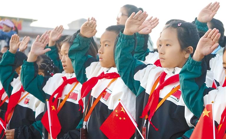 孩子們在天安門廣場觀看升旗儀式。中國兒童中心供圖