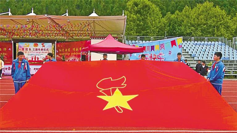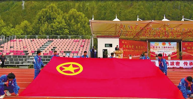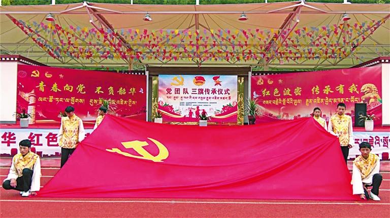 黨團(tuán)隊三旗傳承儀式現(xiàn)場。記者 胡文 通訊員 旦珍 攝
