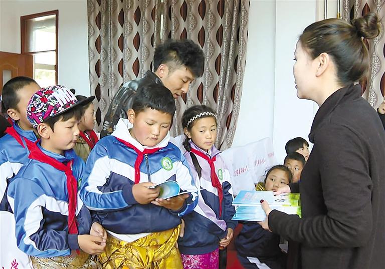 圖為貢覺縣法院工作人員向學生講解禁毒知識。記者 平措郎加 通訊員 阿漠依依 攝