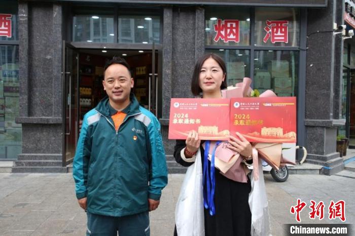 “您好!請問是劉恒赫、劉恒碩嗎?我是郵政EMS,您的高考錄取通知書到了,請您帶上身份證和準考證簽收一下?!?2日11時許,中國郵政集團有限公司拉薩市寄遞事業(yè)部城西攬投部攬投員索朗多吉成功將兩封來自中國人民公安大學的錄取通知書送達到雙胞胎考生劉恒赫、劉恒碩同學的母親手中,一起送上的還有西藏郵政精心準備的鮮花和哈達。隨著此次錄取通知書的成功投遞,西藏高考錄取通知書寄遞服務保障工作正式拉開帷幕。