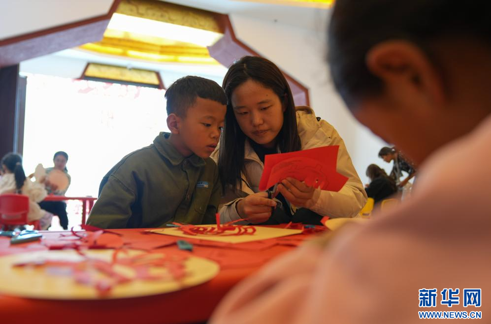 當天,西藏牦牛博物館臨時展廳內(nèi),來自拉薩各地的孩子們在家長的陪同下,踴躍參與博物館精心準備的剪紙藝術體驗活動。孩子們在專業(yè)老師的指導下,拿起小剪刀,全神貫注地投入到剪紙的世界中。無論是靈動跳躍的魚兒,還是寓意吉祥的中國結,在孩子們靈巧的手中,一張張紅紙漸漸幻化為一件件栩栩如生、充滿童趣的藝術作品。