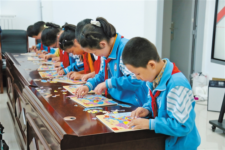 圖為學(xué)生參加“小小少年識地圖”拼圖比賽。記者 潘璐 攝