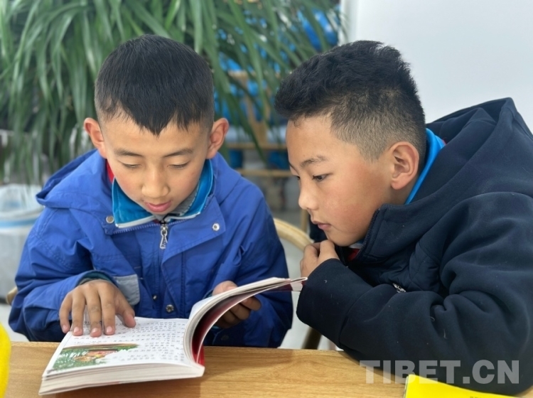 圖為拉薩市實(shí)驗(yàn)小學(xué)的同學(xué)們?cè)陂喿x書籍 攝影:旦曲