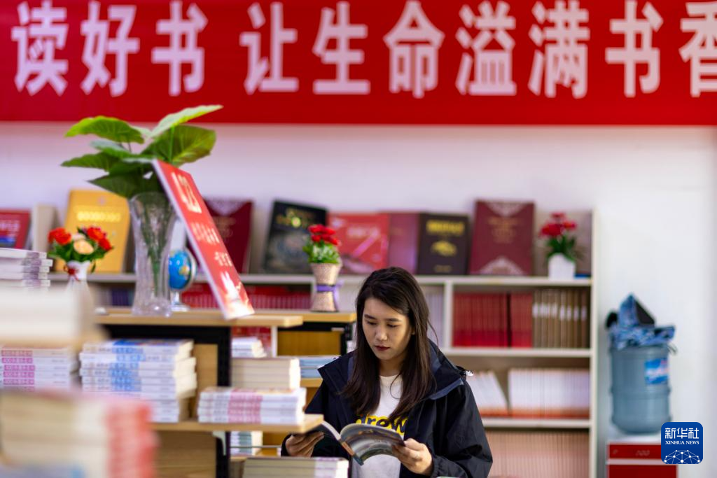 4月22日,當(dāng)?shù)厝罕娫谀摗吧徎〞?shū)屋”閱讀。新華社記者 姜帆 攝