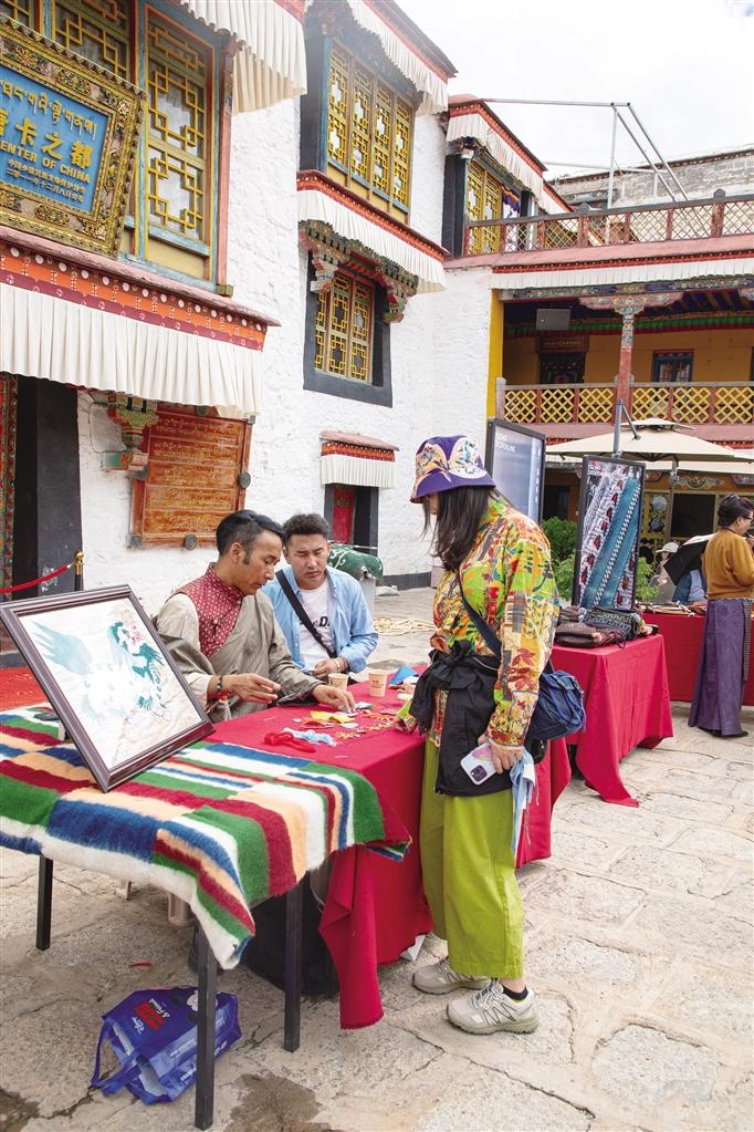 “你看,這個玩偶好別致,而且很有分量感!”走進夏扎大院,來自西安的游客王女士正在卓番林·措瓦店內選購。卓瑪介紹,卓番林·措瓦巧妙融合傳統(tǒng)精髓與現(xiàn)代審美、藝術靈感與生活實用,致力于通過溫馨而富有情感的產(chǎn)品,守護并傳承精湛的手工藝,同時讓西藏的手工藝成為每個家庭溫馨記憶的守護者。
