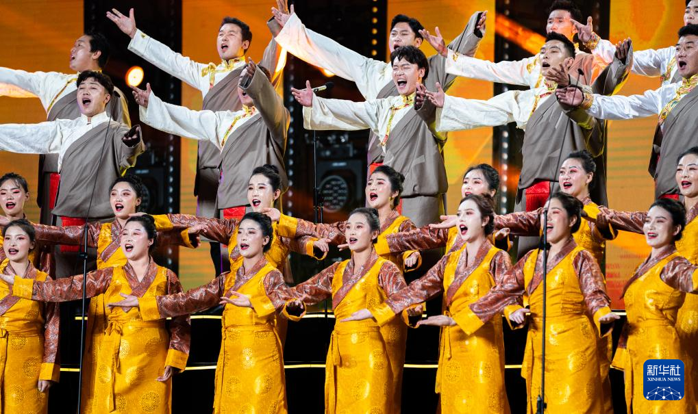 參賽隊(duì)伍在合唱大賽上演繹曲目(9月25日攝)。新華社記者 丁增尼達(dá) 攝