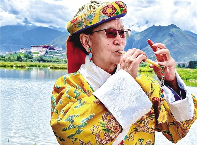 鷹笛是來自于大自然的樂器,吹奏出的每個(gè)音符蘊(yùn)含了大自然的靈性。笛聲如同在天空中任意翱翔的雄鷹,高亢且空靈,似乎在訴說著千年的傳奇。今年74歲的次旦,是國家一級(jí)演奏員,也是自治區(qū)級(jí)藏族鷹笛藝術(shù)非物質(zhì)文化遺產(chǎn)代表性傳承人。次旦老師從小和鷹笛結(jié)下了不解之緣,并立志要將藏族鷹笛藝術(shù)發(fā)揚(yáng)光大。如今,退休在家的次旦老師依舊奔忙在傳播藏族鷹笛藝術(shù)的工作中,為傳承“非遺”貢獻(xiàn)著自己的力量。