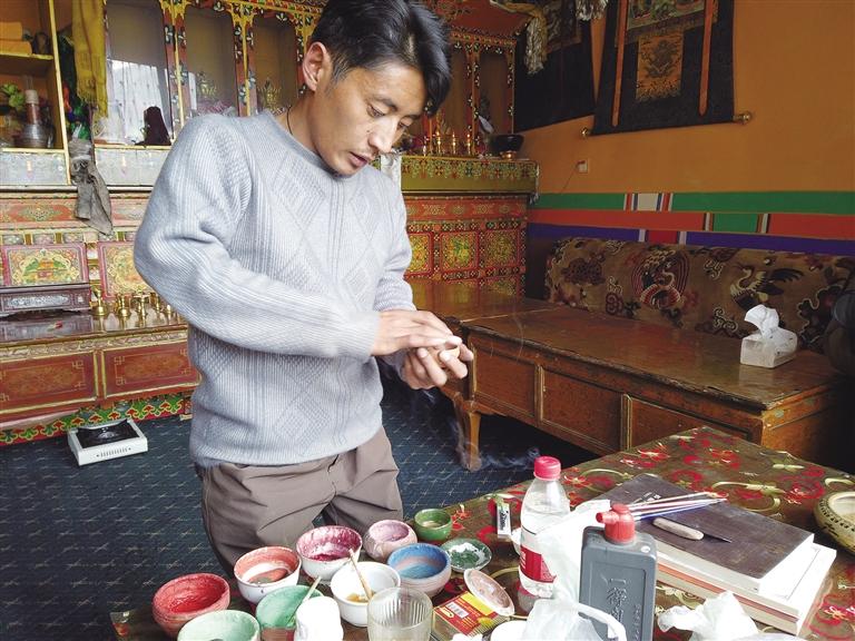 尼瑪次仁因身體殘疾,無(wú)法出去工作,也不能從事繁重的農(nóng)活,這一度讓他感到失落和迷茫。然而,命運(yùn)在為他關(guān)上了一扇門(mén)的同時(shí),也為他打開(kāi)了一扇窗。在龍珠崗村委會(huì)的推薦下,他來(lái)到了墨竹工卡縣職業(yè)教育中心,開(kāi)始學(xué)習(xí)唐卡繪畫(huà)。這一選擇,成為了他人生的重要轉(zhuǎn)折點(diǎn)。