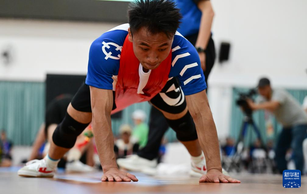 11月27日,貴州隊(duì)選手張仁信在55公斤級(jí)決賽中。他戰(zhàn)勝重慶隊(duì)選手王珍寬,獲得一等獎(jiǎng)。當(dāng)日,第十二屆全國(guó)少數(shù)民族傳統(tǒng)體育運(yùn)動(dòng)會(huì)押加項(xiàng)目55、61、68、76、85公斤級(jí)五個(gè)組別的決賽在海南省三亞市舉行。新華社記者 周牧 攝
