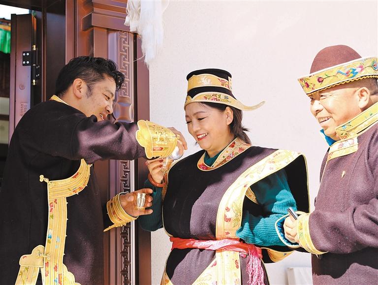 “切瑪”送祝福,客人新年期間做客工布家庭,主人會(huì)端出象征人壽年豐的切瑪迎接貴客,祝愿他們來年平安順?biāo)欤?/p>