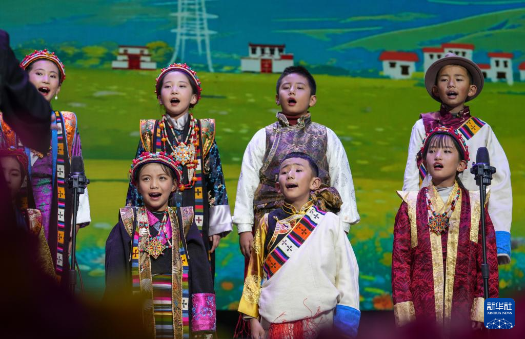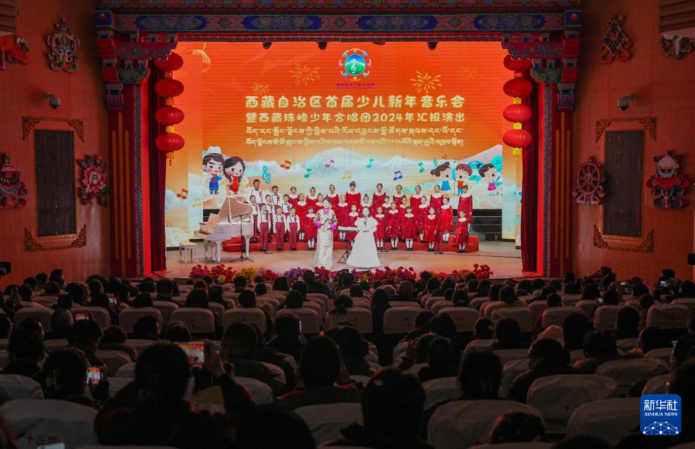 12月28日拍攝的西藏首屆少兒新年音樂會暨西藏珠峰少年合唱團(tuán)2024年匯報(bào)演出現(xiàn)場。新華社記者 晉美多吉 攝