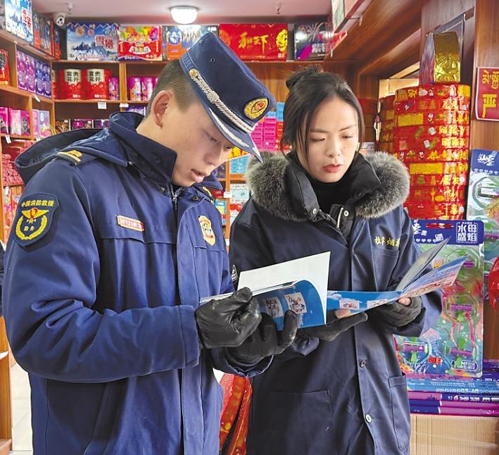 拉薩市消防救援支隊宣傳員走進煙花爆竹經銷點,為店員科普易燃易爆場所消防安全知識。 通訊員 肖暄 攝