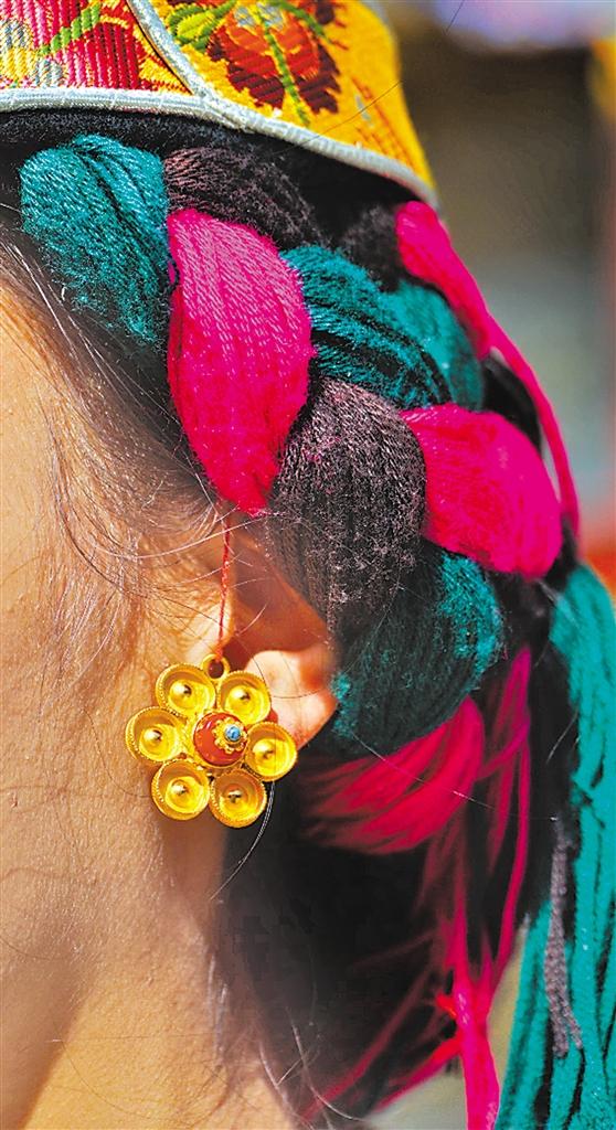 墨竹工卡縣女式花朵形耳飾。