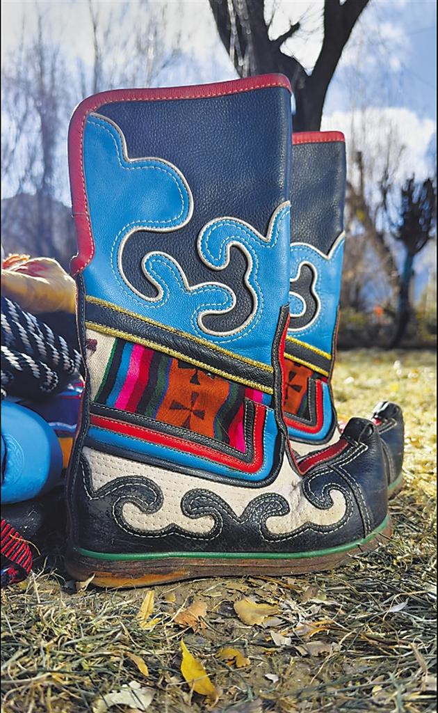 堆龍德慶區(qū)覺木隆派藏戲演員表演時穿的藏靴。