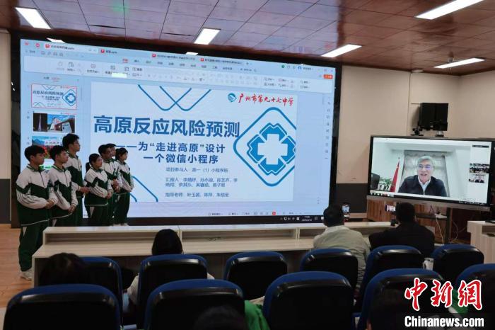 活動期間,廣州97中高一年級小程序班學生介紹了“高原反應風險預測”小程序。羅鳳鳴教授通過視頻連線予以專業(yè)點評,稱贊該小程序?qū)η巴咴巳簶O具實用價值,對學生的科學探索與創(chuàng)新精神表示欽佩,并愿持續(xù)提供指導。