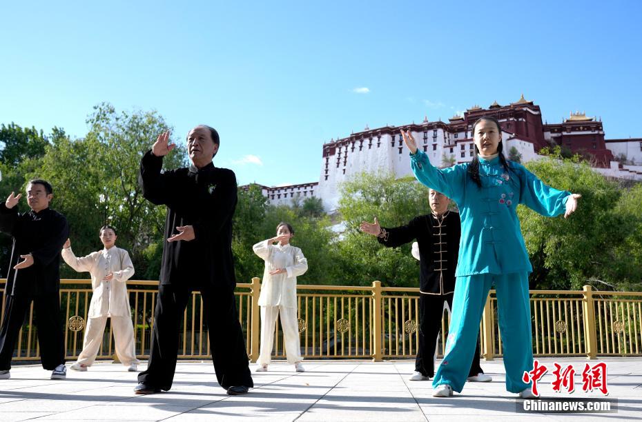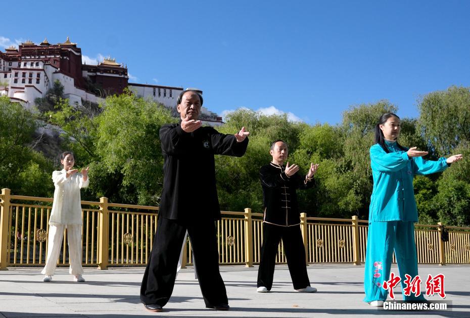隨著盧氏太極拳在拉薩設(shè)立傳承中心,鼓勵(lì)更多人積極參與到太極拳這項(xiàng)有益身心健康的運(yùn)動(dòng)中來,西藏民眾打太極拳的身影越來越多。西藏屬于高原缺氧地區(qū),太極拳作為一種內(nèi)外兼修、柔和緩慢、剛?cè)岵?jì)的中國傳統(tǒng)拳術(shù),適宜高原地區(qū)民眾練習(xí)。圖為5月13日,民眾在位于布達(dá)拉宮腳下宗角祿康公園內(nèi)打太極拳。中新社記者 李林 攝