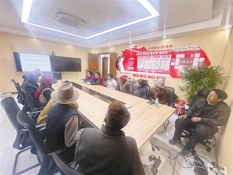 圖為國(guó)網(wǎng)西藏超高壓公司組織黨員服務(wù)隊(duì)向村民講解防汛減災(zāi)知識(shí)。記者 盧文靜 攝