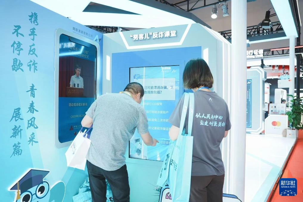 圖為2025中國國際金融展上,參觀者在網(wǎng)聯(lián)清算公司展臺參加反詐互動答題。(網(wǎng)聯(lián)清算公司供圖)