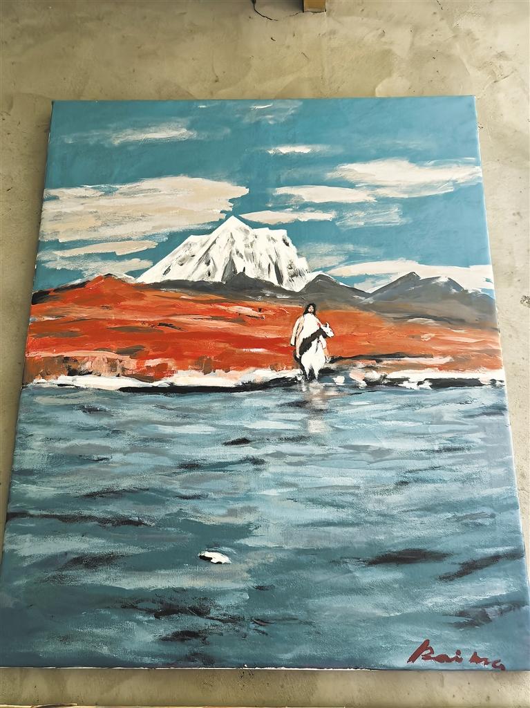 在絕望的深淵里,這片土地深沉的力量和藝術(shù)創(chuàng)作的本能召喚,讓他抓住了救贖的繩索。他用了漫長(zhǎng)光陰,艱難地完成了這場(chǎng)精神的浴火涅槃:重新拾起寫詩(shī)的筆,鋪開作畫的紙,用文字和色彩,一步一個(gè)腳印地跋涉,終于走出了那場(chǎng)“淋了10多年的大雨”。他決然放下沉重的過往,以“白瑪次仁”之名擁抱新生,將一路的風(fēng)霜、藏地的壯美與故事,化作筆下的詩(shī)行與畫布上的色彩,在藝術(shù)的熔爐中淬煉出一個(gè)全新的自我。