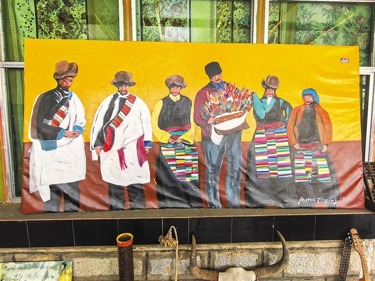 近年來,白瑪次仁背著他的畫作跑到拉脫維亞、西班牙、日本各地巡展?!拔鞑鼗蛘呶?,很榮幸能以這種方式被大家認(rèn)識(shí)和接受?!?/p>