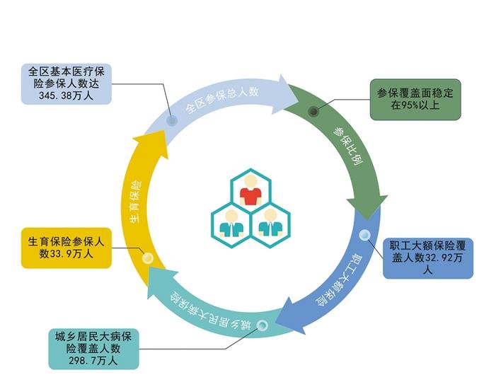 ——截至2019年底,全區(qū)基本醫(yī)療保險參保人數(shù)達345.38萬人,參保覆蓋面穩(wěn)定在95%以上。職工大額保險覆蓋人數(shù)32.92萬人,城鄉(xiāng)居民大病保險覆蓋人數(shù)298.7萬人,生育保險參保人數(shù)33.9萬人;