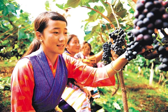 芒康群眾在采摘葡萄。