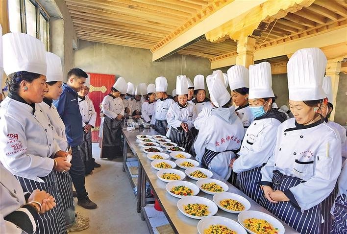 圖為群眾在參加廚師技能培訓(xùn)。通訊員 索朗次仁 記者 潘多 攝
