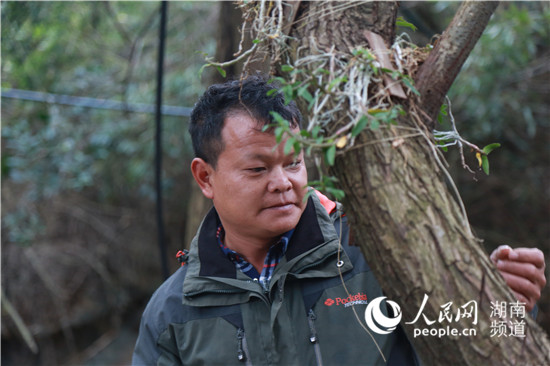 譚躍平正在察看石斛的長(zhǎng)勢(shì)。李芳森 攝
