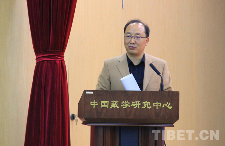 圖為中國藏學(xué)研究中心社會(huì)經(jīng)濟(jì)研究所所長扎洛作主旨發(fā)言 攝影:王茜
