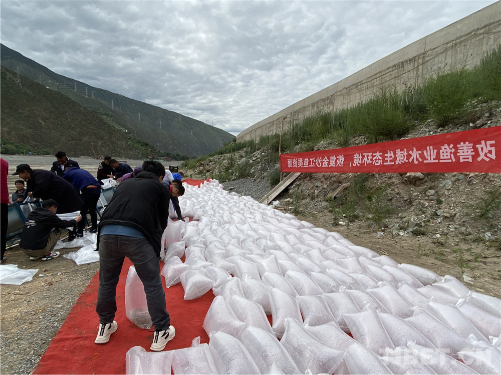 在工作人員協(xié)助下,老阿媽把一袋袋魚苗放入江中。據(jù)老阿媽說,當年十八軍進藏路過這里,帶的糧食不多,他們不向當?shù)厝苏骷Z,有些人餓得浮腫。江河中的魚兒好抓,但沒有一個戰(zhàn)士違反紀律去抓魚。藏族敬畏魚,不捕魚,不吃魚。解放軍尊重當?shù)仫L俗,即使餓死也不抓魚充饑。