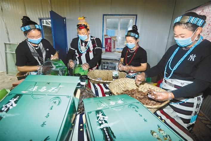 圖為珞隅綠色農(nóng)產(chǎn)品合作社員工正在包裝犀鳥(niǎo)茶。記者 唐斌 洛桑 攝