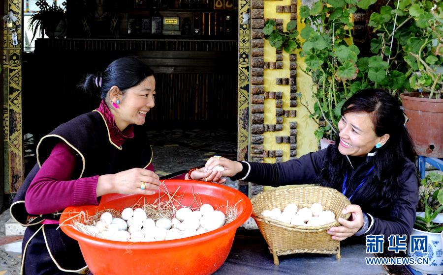 西藏林芝市魯朗鎮(zhèn)村民整理收集來的藏雞蛋(2016年4月6日攝)。新華社記者 張汝鋒 攝