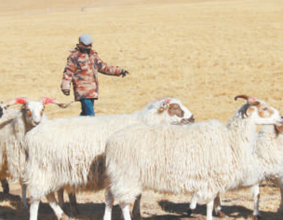 達玉村生態(tài)畜牧業(yè)專業(yè)合作社放牧員才科在放牧。記者 王 梅攝