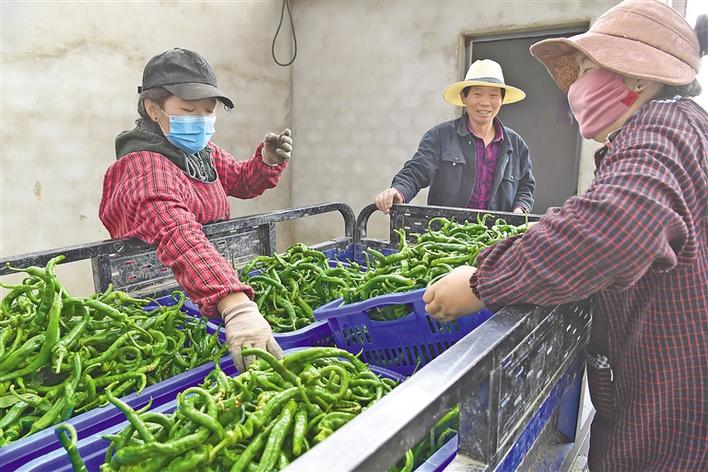 圖為在基地就業(yè)的瓊結(jié)縣下水鄉(xiāng)村民將采摘的青椒運(yùn)往市場。記者 洛桑 次旺 攝