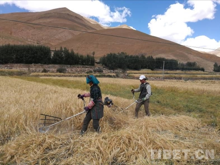 拉木堆村位于西藏自治區(qū)日喀則市定日縣扎西宗鄉(xiāng)西北約6公里,平均海拔4280米,由于地域偏僻和高寒缺氧,長期以來社會生產(chǎn)力較為落后,青稞早已是村民們物質(zhì)生活的核心內(nèi)容。2017年的3月份薩央節(jié)期間,村民們身著民族盛裝,載歌載舞,唱著頌歌行繞田頭,祈求著秋天的豐收。為確保秋收順利和提高農(nóng)業(yè)機械化水平,我們工作隊和村兩委班子經(jīng)過認真商議,2017年9月初專程前往日喀則為每一戶村民購置了收割機。
