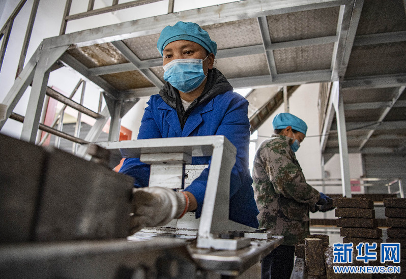 在易貢茶場(chǎng),工作人員在制作磚茶(4月1日攝)。新華社記者 孫非 攝
