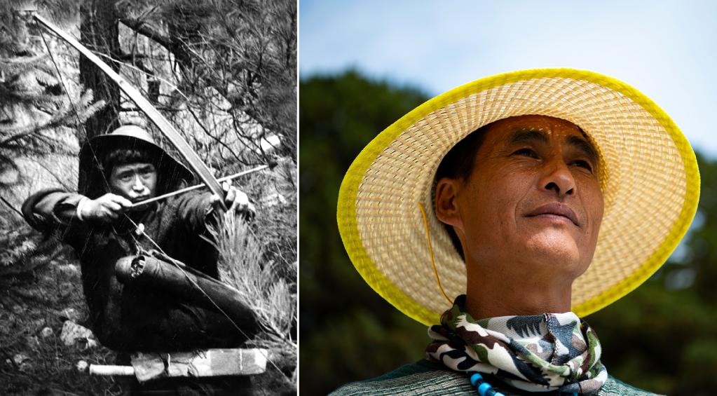 左圖是20世紀(jì)50年代瓊林村非常有名的獵手達前(資料照,新華社發(fā));右圖是瓊林村珞巴族達吉,結(jié)束打獵生涯,成為護林員(2021年6月19日攝)。新華社記者 晉美多吉 攝