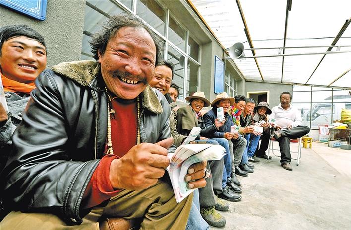 領(lǐng)到安居工程財政補(bǔ)助金的安多縣扎仁鎮(zhèn)牧民。