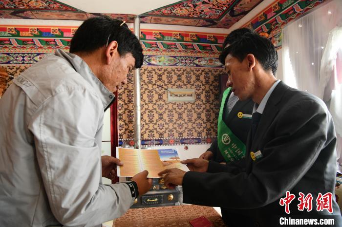 圖為農(nóng)行日土縣支行工作人員為村民宣講貸款政策。 貢嘎來松 攝