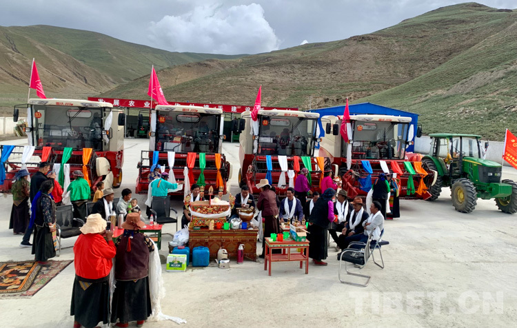 圖為扎林村購買聯(lián)合收割機