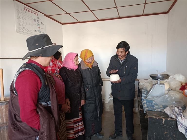 馬村草場(chǎng)遼闊,有著養(yǎng)殖犏牛等牲畜的良好自然條件。以前該村由于一直依靠傳統(tǒng)方式養(yǎng)牛,規(guī)模小、科技含量低、品種老化、產(chǎn)業(yè)帶動(dòng)力不明顯,一直處于“家家養(yǎng)牛家家窮”的狀態(tài)。2013年,在拉薩市委組織部(駐村工作隊(duì))的幫扶下,投入90萬(wàn)元成立了堆龍德慶區(qū)馬鎮(zhèn)馬村平措犏牛養(yǎng)殖合作社。接下來(lái)的幾年不斷擴(kuò)大養(yǎng)殖規(guī)模和提高養(yǎng)殖經(jīng)營(yíng)水平,建成了馬村高原特色犏牛養(yǎng)殖及乳制品加工銷(xiāo)售一體化養(yǎng)殖基地,其乳制品深受市場(chǎng)的歡迎。目前,合作社有犏牛100多頭,帶動(dòng)5人就業(yè),2019年起除了與其他村集體經(jīng)濟(jì)收入一起給常住戶分紅外,每年向本村建檔立卡貧困戶分紅?!拔覀兇褰?jīng)過(guò)發(fā)展,成立了犏牛養(yǎng)殖合作社,合作社的收入一年比一年好。今年,村集體經(jīng)濟(jì)為我們脫貧戶每戶分紅2900元,我們特別開(kāi)心。今后也希望能更多地參與到村集體發(fā)展中,學(xué)好技術(shù),讓家庭條件越來(lái)越好。”村民洛桑高興地說(shuō)。