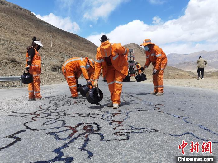 圖為西藏基層農(nóng)村公路養(yǎng)護人員已經(jīng)實現(xiàn)技能專業(yè)化?!∥鞑刈灾螀^(qū)交通運輸廳供圖